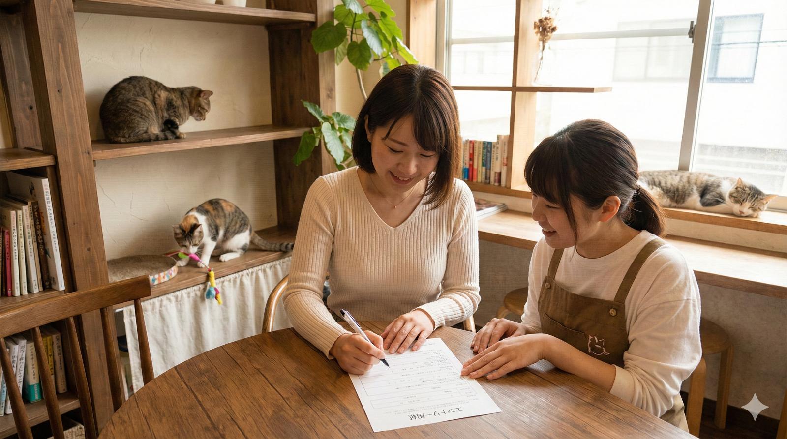 たところ、かわいい保護ネコがいたので応募しました。それがカフェオーナーとの出会い